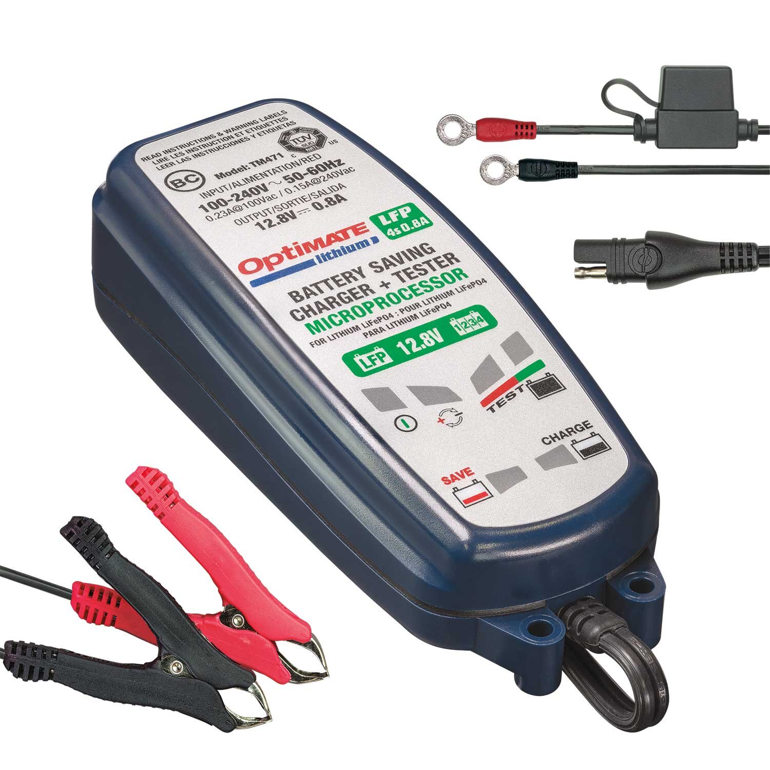 The essential battery charger for the 12.8V/13.2V LiFeP04/LFP in your off-road, moto-cross or race motorcycle - ultimate protection for your high performance Lithium battery. Automatically charge, test and maintain your 12.8V / 13.2V LiFePO4/LFP starter or deep cycle batteries - battery performance guaranteed. If you forgot, saves your lithium battery from as low as 0.5V with the unique and safe OptiMATE Lithium method - continues charging if healthy, stops and warns if faulty. BMS wake up mode safely wakes battery with integrated BMS protection out of sleep mode. OptiMATE Lithium 24-7 smart inter-active maintenance prevents discharge from connected circuitry and guarantees more battery power, longer battery life.