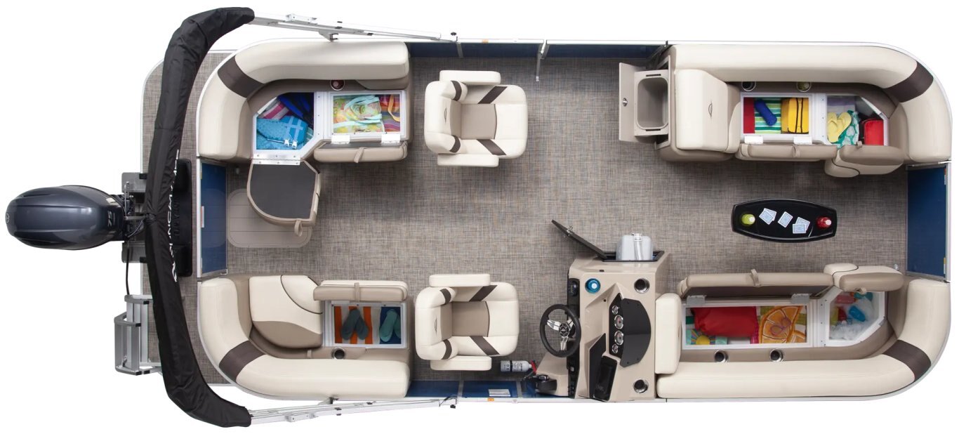Underseat storage provides a convenient place to stow life jackets, towels, toys and other essentials, keeper your pontoon clutter-free.
