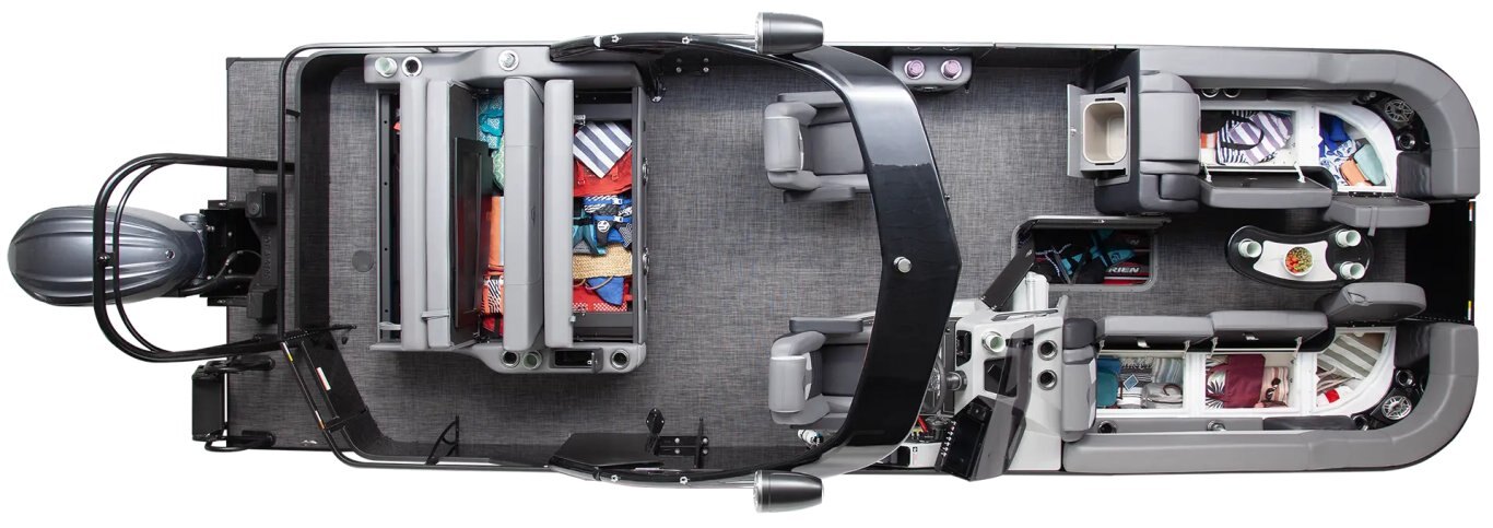 Every SunCatcher Elite is engineered with solid, foam filled pontoon logs and one-piece extruded cross members for lasting durability. A 3/4″ marine-grade deck, backed by a limited lifetime guarantee, and standard under-deck performance shields ensure strength, stability, and confidence on the water.