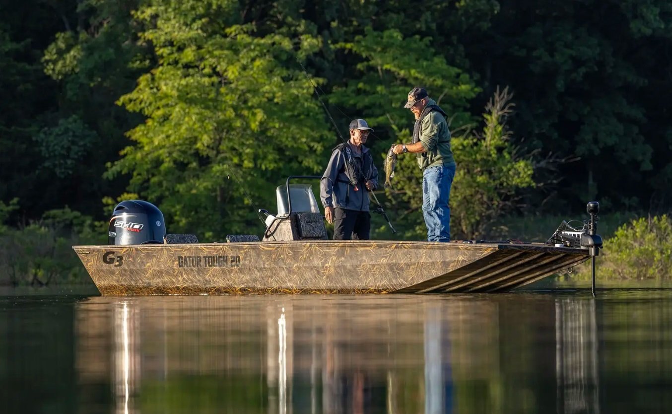 The Gator Tough Jon Series boat, motor and trailer packages are available in center or side console options in 20′ – 17′ lengths. Duck boats are also available in 18′, 16′ and 15′ options.